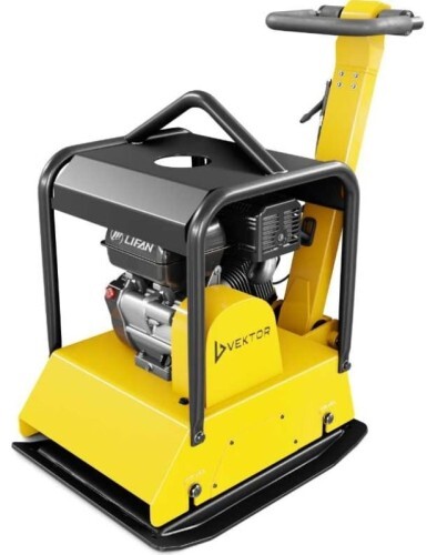 Виброплита Vektor для точечного уплотнения сыпучих и несвязных грунтовых поверхностей. Оборудование используют дорожные службы и строители на небольших участках, куда затруднен доступ более крупной техники.