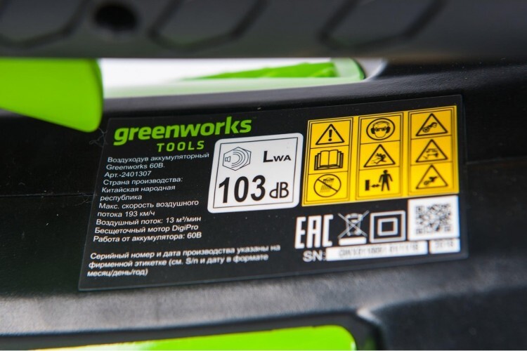 Воздуходувка аккумуляторная Greenworks из линейки устройств 60 вольт (модель GD60AB) – основной задачей является очистка территории от листьев, пыли и другого легкого мусора. Очень пригодится в осенний или весенний период для быстрого сбора опавших листьев, для периодической уборки и сдувания пыли с террас и садовых дорожек в течение всего дачного сезона. Также её можно применять в качестве турбо сушки для авто, а зимой для уборки свежевыпавшего снега. Одним словом — незаменимая вещь в хозяйстве.