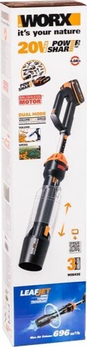 Аккумуляторная воздуходувка WORX WG543E - это абсолютно новое изобретение в категории воздуходувок. Её инновационный дизайн является уникальным в своём роде и выводит воздуходувки на совершенно новый уровень. WORX WG543E, была разработана с использованием технологии воздушного усилителя, который в свою очередь, обеспечивает сверхсильный поток воздуха. Данная технология позволяет втягивать воздух снаружи трубы, тем самым создавая большой объём выдуваемого воздуха. Также воздуходувка оснащена бесщеточным двигателем, который обеспечивает более длительное время работы от одного заряда аккумулятора и больший срок службы двигателя. Воздуходувка WG543E обладает чрезвычайно легким весом, всего 1 кг (без АКБ), а также компактным дизайном для удобной работы. Воздуходувка работает от аккумуляторных батарей POWERSHARE® 20 В, которые взаимозаменяемы с другими инструментами WORX..