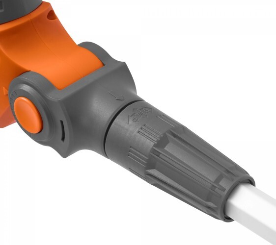 Простой и надежный механизм телескопической рукоятки обеспечивает комфортную работу на расстоянии до 3 метров без использования лестниц.