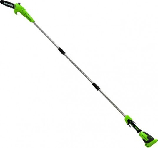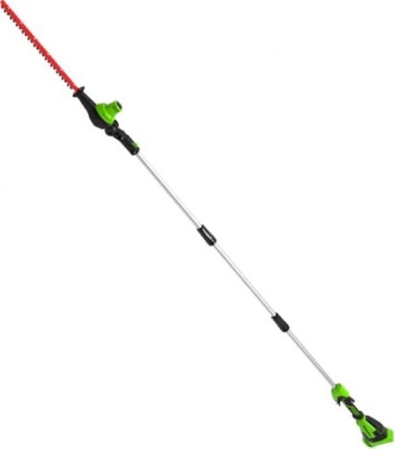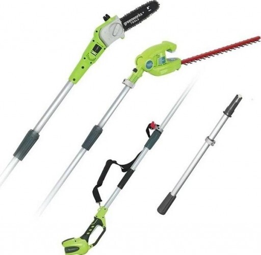 Высоторез-Кусторез аккумуляторный Greenworks Арт. 1303907, 2 в 1, 40V, без АКБ и ЗУ. Отличный инструмент для ухода за вашим садом. Имеет две сменные насадки, которые крепятся к штанге устройства. Высоторез с легкостью справится с обрезкой ветвей и сучьев на высоте до 3,5-х метров, благодаря 3-х секционной штанге длиной 1,7 м. Пильная шина имеет длину 25 см. Кусторез предназначен для ухода за живыми изгородями. Длина лезвия составляет 51 см. Уход за высокими деревьями и кустами станет легче и безопасней! Садовая лестница теперь не нужна. Согласитесь, стоять на земле гораздо комфортнее, чем на неустойчивой лестнице с работающим инструментом в руках. Работа от Li-ion аккумулятора 40V совместимого с 50+ моделями инновационного садового инструмента из линейки Greenworks 40V. На инструмент предоставляется расширенная гарантия 3 года. Этот комплект поставляется без аккумулятора (АКБ) и зарядного устройства (ЗУ).