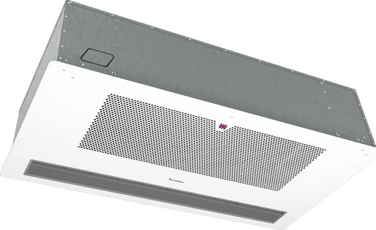 Преимущества завеса предназначена для скрытой установки за подвесным потолком лицевая панель изготовлена из окрашенной стали светло-серого цвета RAL7035 встроена плата РСВ-АС, позволяющее подключать неограниченное количество завес к одному пульту, а также дополнительное оборудование сервис и обслуживание осуществляется через откидную лицевую панель завесы в комплекте пульт HL10 и кронштейны