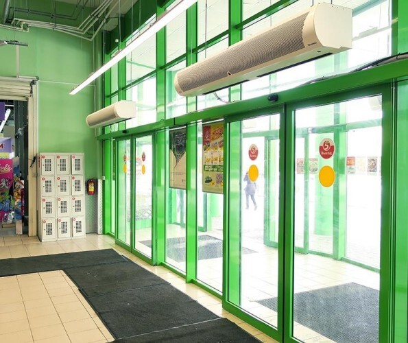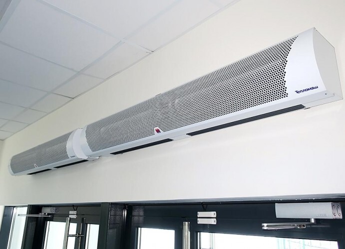 Воздушная завеса Комфорт для проемов высотой от 2 до 3,5 м. Переднее всасывание воздуха допускает установку завесы в ограниченном пространстве.