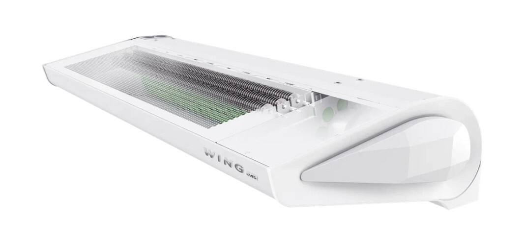 Воздушная завеса с электрическим нагревателем WING II E100 AC создает теплый воздушный барьер при открытом проёме, тем самым препятствует холодному воздуху с улицы проникнуть внутрь помещения. Современный дизайн воздушной завесы WING даёт возможность широкого её применения: помимо складских помещений, и прочих промышленных объектов, завесы устанавливают в магазины, спортивные объекты, супермаркеты, здания общественного пользования, гостиницы, аптеки, поликлиники и больницы.